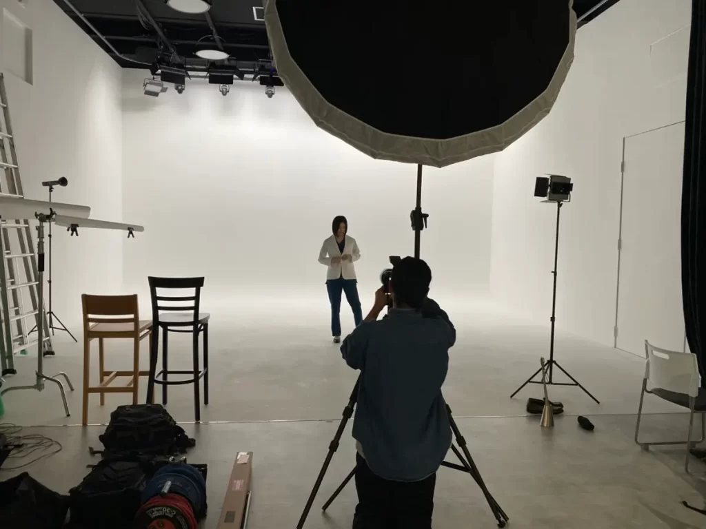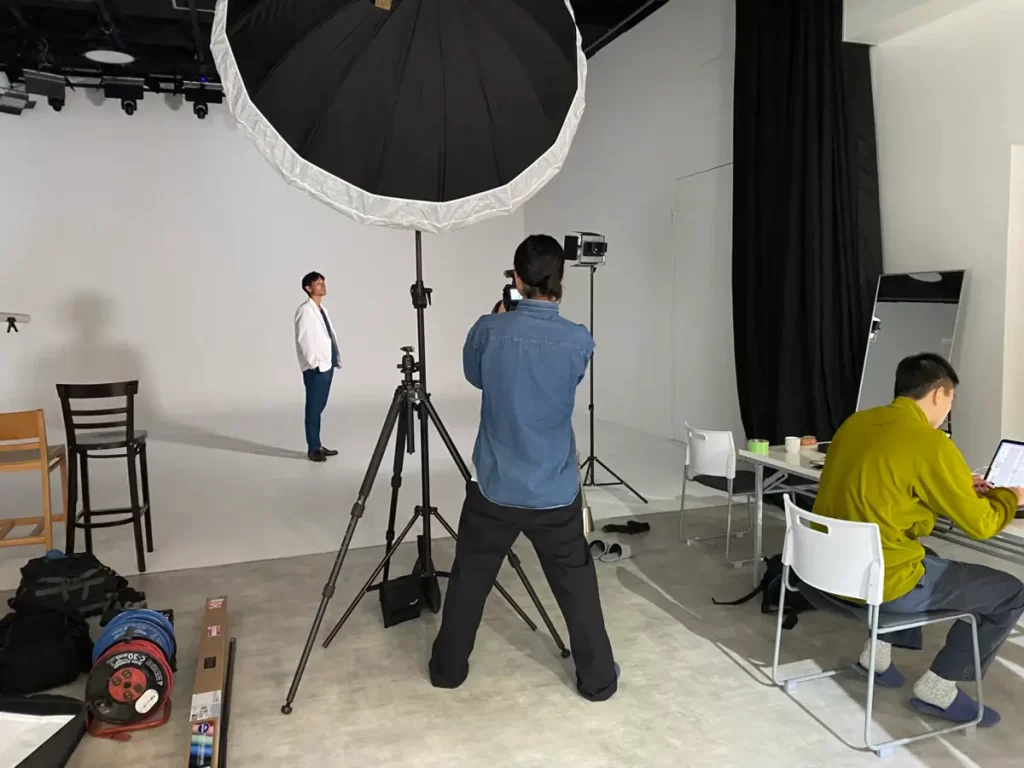 さらに椅子や書類などの小道具を効果的に活用することで、立ち姿だけでは伝わりにくいリラックス感や臨場感を表現。椅子に腰掛けながら資料を確認するシーンや、立ち位置を変えながら談笑する場面など、よりリアルな雰囲気のカットが数多く生まれました。